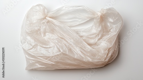 © Jakkapong, Fototapeta premium Crumpled Translucent Plastic Bag on White Background