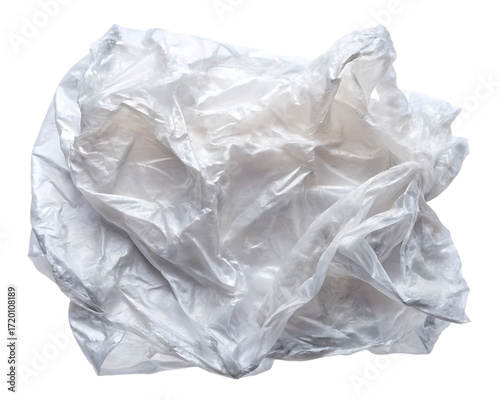 © rezia, Fototapeta premium Crumpled Transparent Plastic Bag on White Background translucent isolated on a transparent background