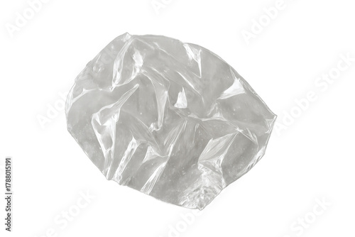 © Michael, Fototapeta premium Crumpled transparent plastic film showing texture and light reflections, a symbol of waste, pollution, and discarded packaging