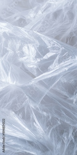 © Iryna, Obraz premium Crumpled transparent plastic texture highlighting environmental concerns