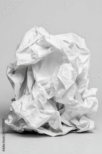 Fototapeta premium Crumpled white paper against a neutral backdrop