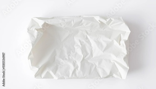 © chanasorn, Fototapeta premium Crumpled white paper bag, folded top, textured surface, isolated on white, object, blank