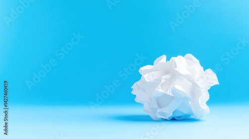 Fototapeta premium Crumpled white paper ball on a bright blue background
