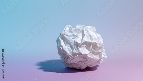 Fototapeta premium Crumpled white paper ball on a gradient background
