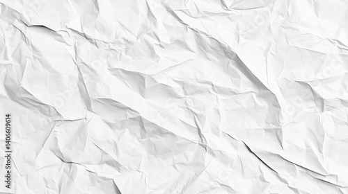 © Newleks, Obraz premium Crumpled white paper creating textured surface with intricate folds, providing abstract background element for graphic design, print, and creative compositions
