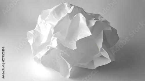 Naklejka premium Crumpled White Paper Sculpture on Soft Background Illustrating Creativity and...