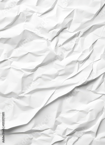 Fototapeta premium Crumpled white paper texture, abstract background, chaotic creased pattern