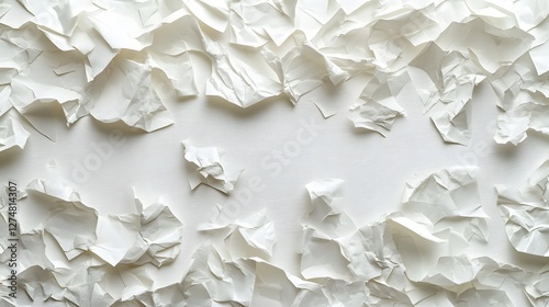 Obraz premium Crumpled white paper texture. Abstract background. Minimalist design. Abstract White Crumpled Paper Texture Background Shredded surface