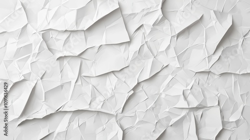 © Narongsag, Obraz premium Crumpled White Paper Texture Background Abstract 3D Render