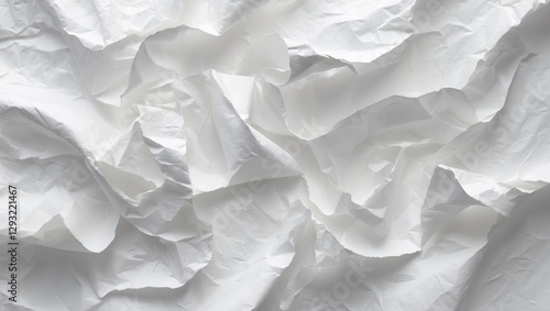 Obraz premium Crumpled white paper texture background for creative design and stationery mockups in minimalistic style.