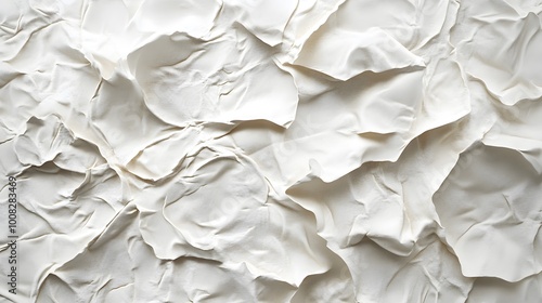 Obraz premium Crumpled white paper texture creating a soft, abstract background.