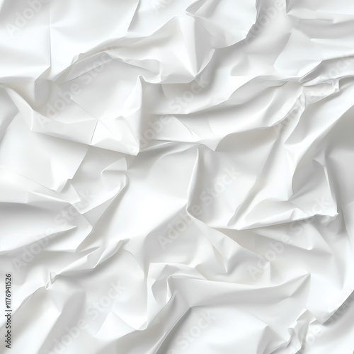 © Alex, Obraz premium Crumpled white paper texture for abstract backgrounds, design projects, or creative artwork showcasing unique surface patterns.
