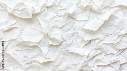 Obraz premium Crumpled white paper texture showcasing intricate folds and shadows