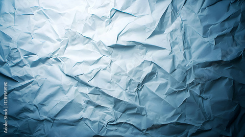 Fototapeta premium Crumpled White Paper Texture With Blue Hues