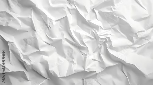 Fototapeta premium Crumpled white paper texture with subtle shadows creating depth and dimension