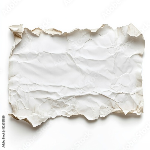 © Murad, Obraz premium Crumpled White Paper Texture with Torn Edges, Ideal for Backgrounds and Overlays in Graphic Design Projects