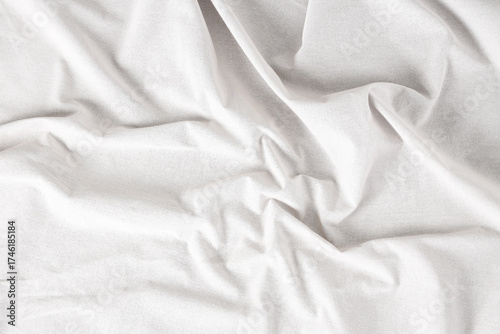 Obraz premium Crumpled white tablecloth as background, top view