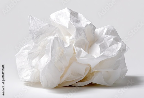 © sangkribo, Obraz premium Crumpled white tissue paper ball against a plain background