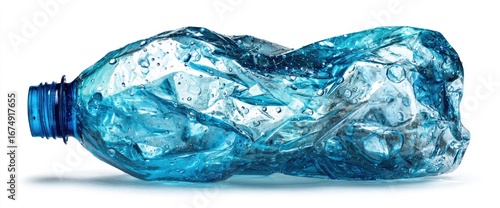 Fototapeta premium Crushed blue plastic water bottle (1)