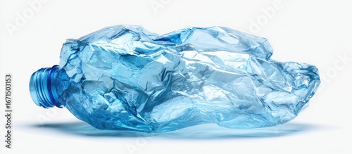 Fototapeta premium Crushed blue plastic water bottle on white background