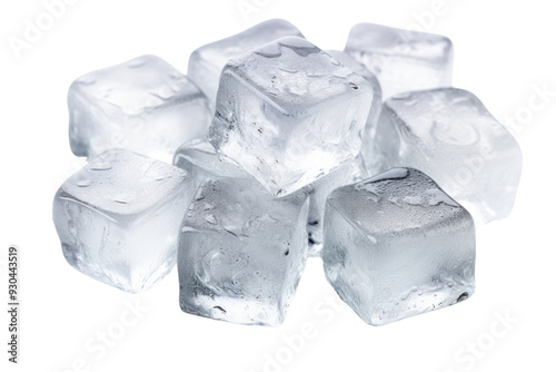 © Oratai, Obraz premium Crushed ice cubes in clear glass, sparkling in sunlight, isolated on white background.