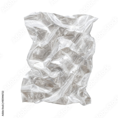© Tonny, Fototapeta premium Crushed transparent plastic bag with geometric pattern on black background crumpled
