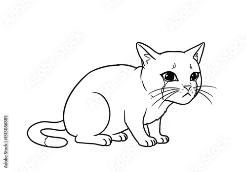 Fototapeta premium Crying cat drawing. It is a black and white outline image of a sad feline, a...