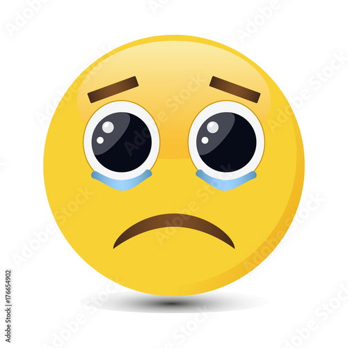 © globalpainting, Fototapeta premium Crying emoticon with big eyes and tears in trendy flat style. Sad emoji vector illustration.