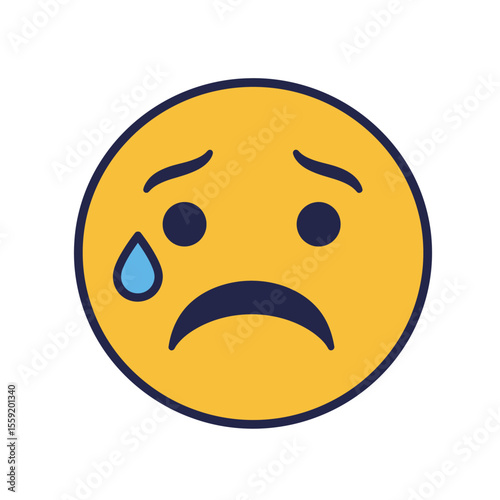 Fototapeta premium Crying Face Emoji (Yellow) – Sad Emotion Vector, Digital Sticker, Social Media Reaction