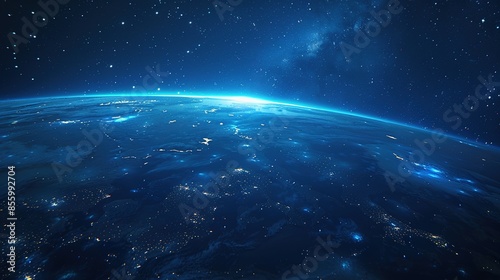Obraz premium Cryptidcore Style Blue Space Background with Earth, Featuring Realistic Lighting
