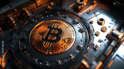 © kitidach, Fototapeta premium Cryptocurrency coins in a virtual vault, secure storage, 3D illustration