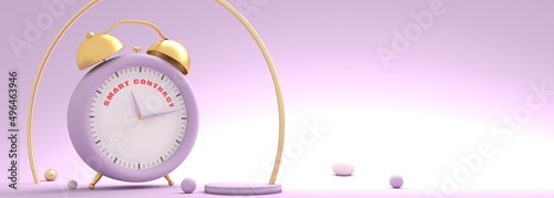 © JEGAS RA, Naklejka premium Cryptocurrency concept. Alarm clock with smart contract text. 3D render