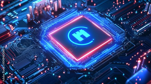 Fototapeta premium Cryptocurrency Logo on Circuit Board