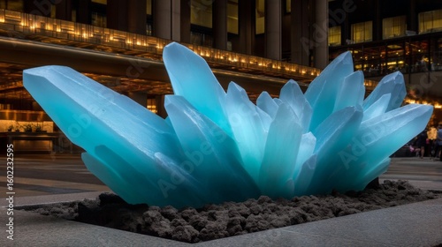 Naklejka premium Crystal art installation urban plaza sculpture modern environment ground level contemporary design