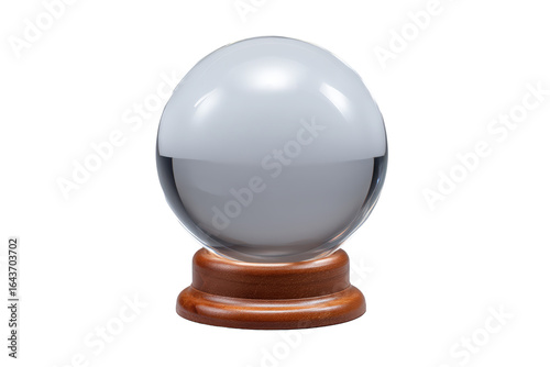 © No background, Obraz premium Crystal ball on a wooden stand isolated on transparent background