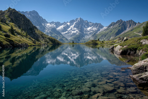 © AI Art, Fototapeta premium crystal clear alpine lake reflecting mountains