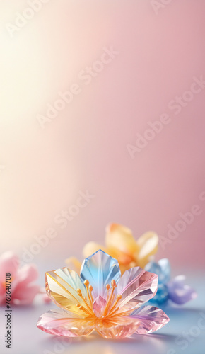 Obraz premium Crystal clear flower with blurred bokeh valentine background. banner with copy space vertical