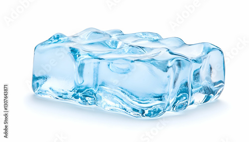 Fototapeta premium Crystal-clear ice cube on white; refreshing drink, advertisement, or website graphic