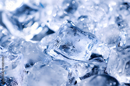 © Kenishirotie, Obraz premium Crystal clear ice cubes background