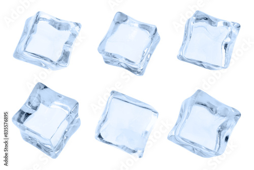 © New Africa, Naklejka premium Crystal clear ice cubes isolated on white, set