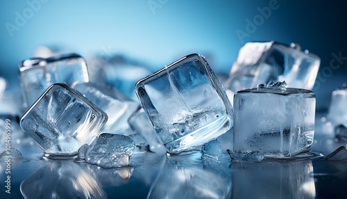 © Rindi, Obraz premium Crystal clear ice cubes scattered
