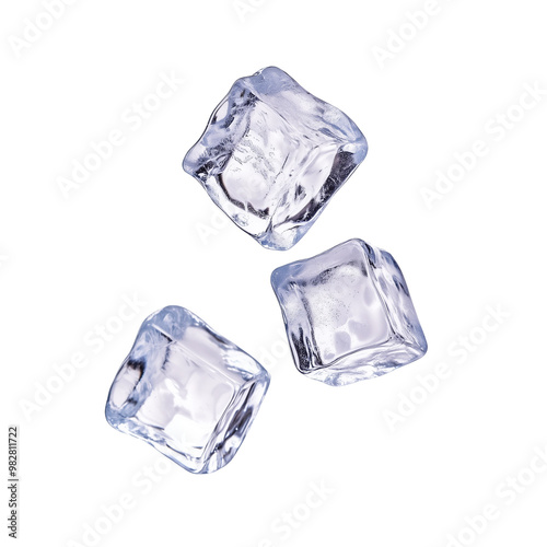 © keisuke, Obraz premium Crystal clear ice cubes scattered. transparent background.