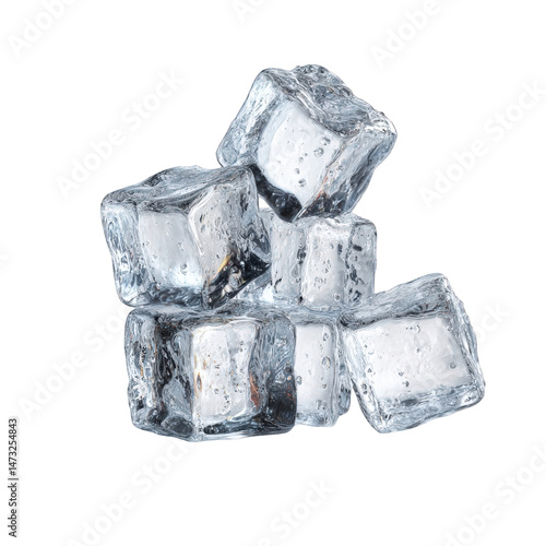 Obraz premium Crystal clear ice cubes stacked on refreshing cold drink wet cool life on transparent background