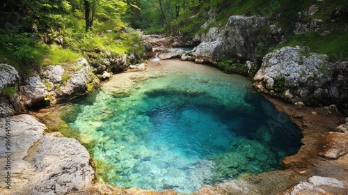 © creativeideh, Naklejka premium Crystal Clear Spring in the Forest