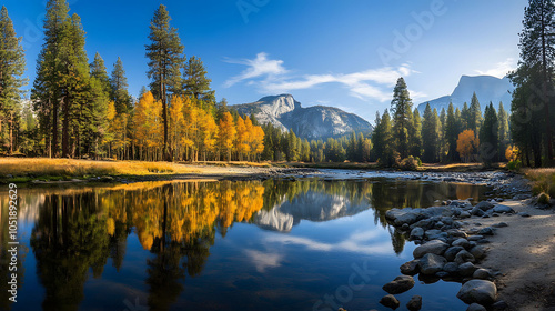 © MakeitEasy, Fototapeta premium Crystal-clear stream cascades through a lush, mountainous forest, painting a serene landscape
