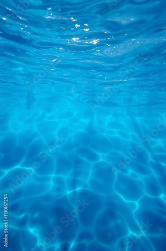 Fototapeta premium Crystal Clear Underwater Surface with Light Reflections and Gentle Waves