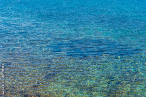 © unai, Obraz premium Crystal clear water gently washing over rocks in mallorca, spain