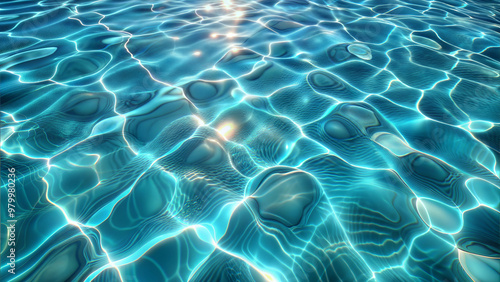 © Aleksandr, Obraz premium Crystal clear water surface with ripples and reflections for nature and aquatic themes