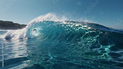 © Supath, Obraz premium Crystal clear wave breaking in ocean.