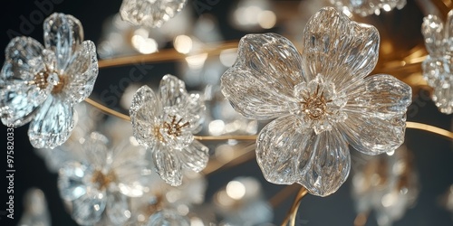 © Murda, Fototapeta premium Crystal flower chandelier with golden accents.